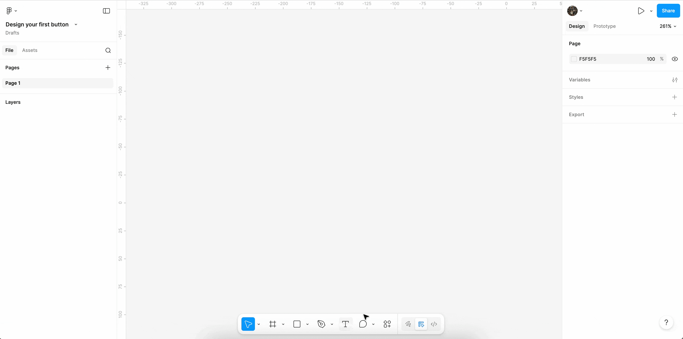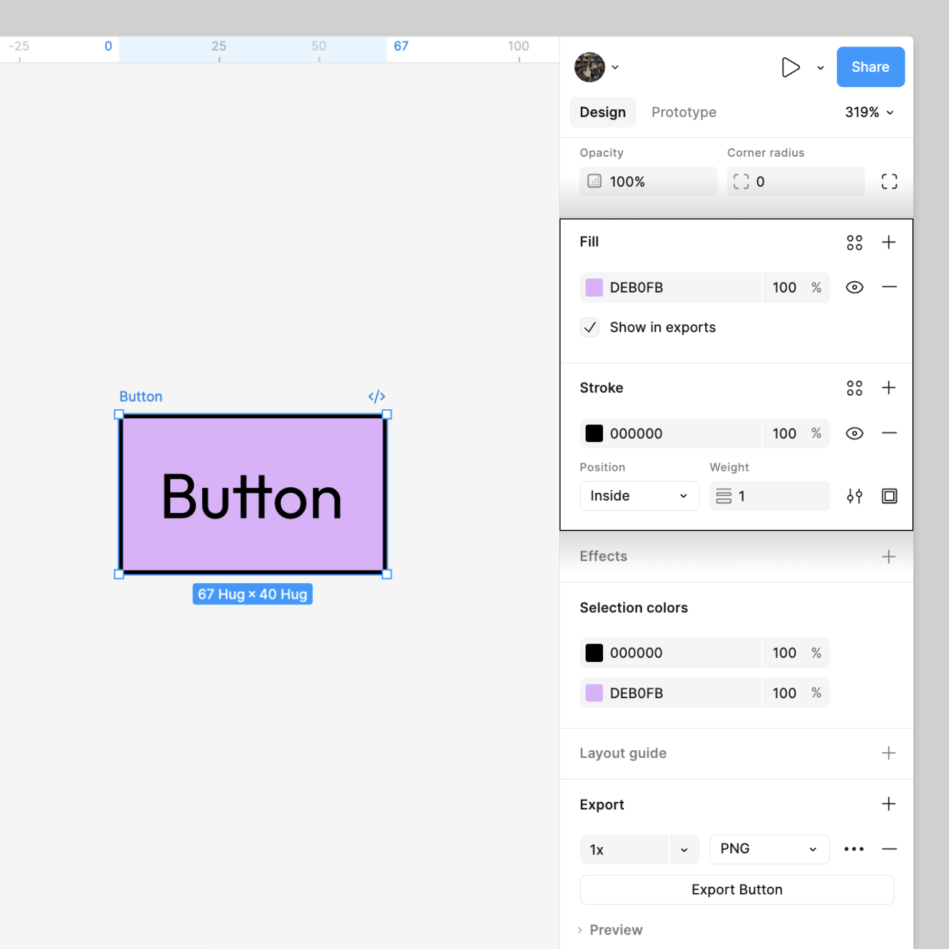 If you take a look at the left sidebar, you’ll notice the Button layer is now identifiable by the purple component icon. Now you’ll be able to add instances of your button from the Assets tab in the left sidebar whenever you need! Learn more about using components.