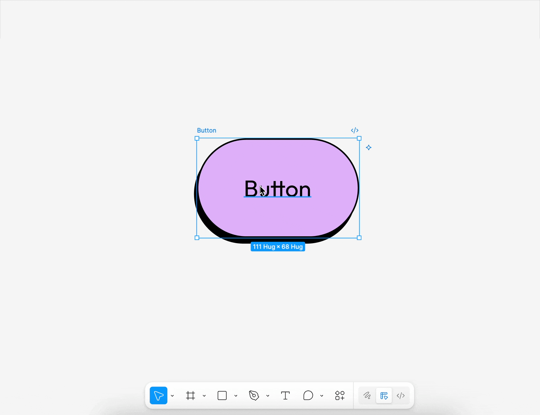 When we applied auto layout, the existing text layer was added to a frame. This allows us to add visual properties like color, strokes, and effects to give our button some style.