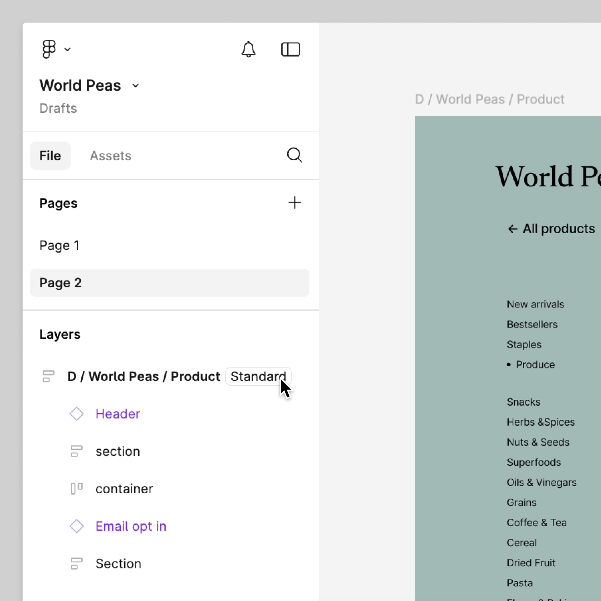 String and number variables can be mapped to variant instances so it switches to a different variant when its mode changes. To do this, the variable’s value must match the variant property’s values.