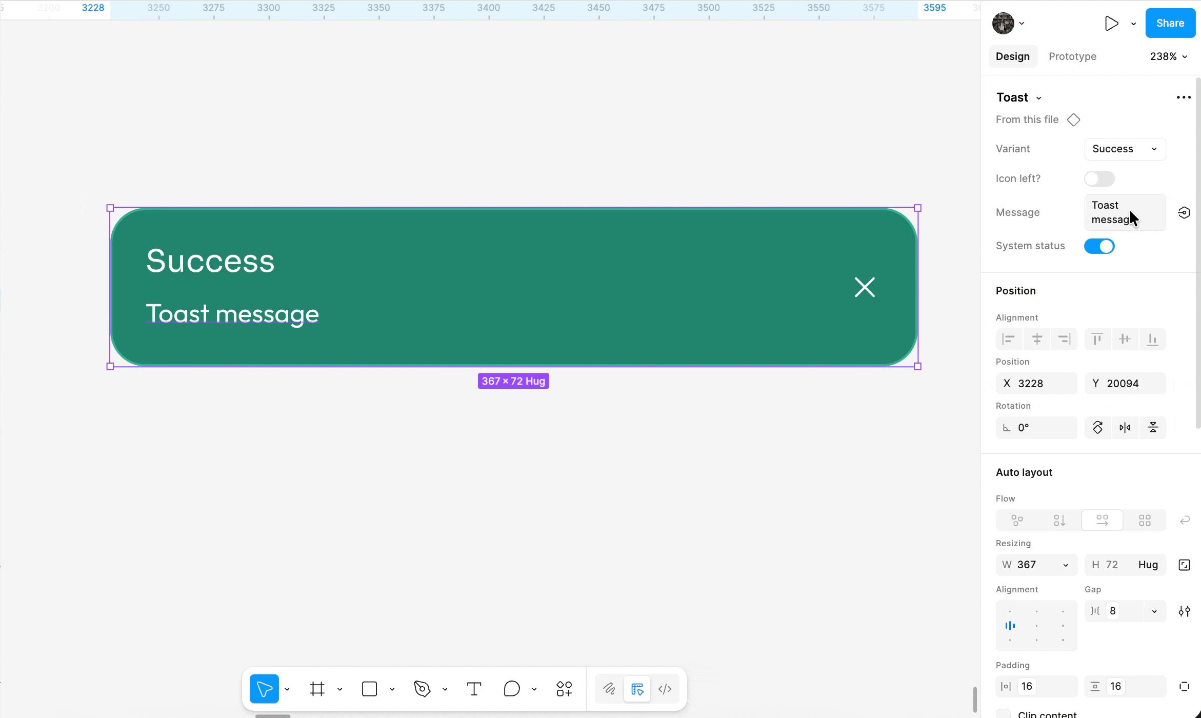 Text properties help eliminate confusion about which text layers are meant to be edited, and which should stay fixed. For example, in a toast notification, you might keep the heading fixed (such as “Success” or “Error”) while allowing the message text to be customized for different situations.