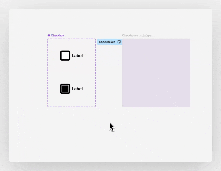 With interactive components, achieving the same outcome only requires creating a component set with two variants (Checked, Unchecked) and two prototype connections. Instances automatically inherit these interactions, so you can simply duplicate the checkbox as many times as needed.
