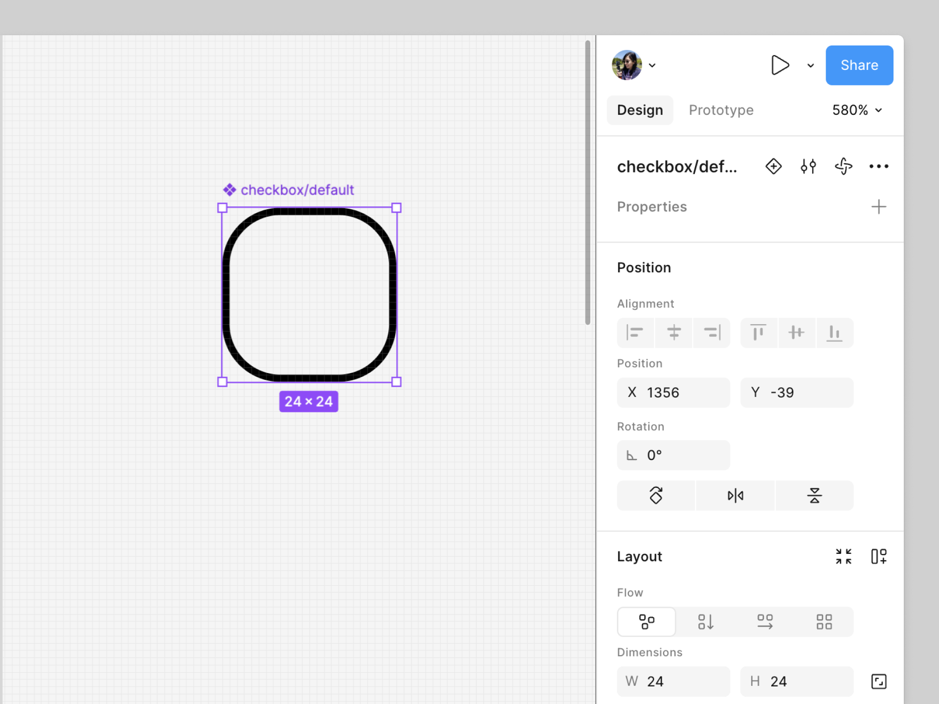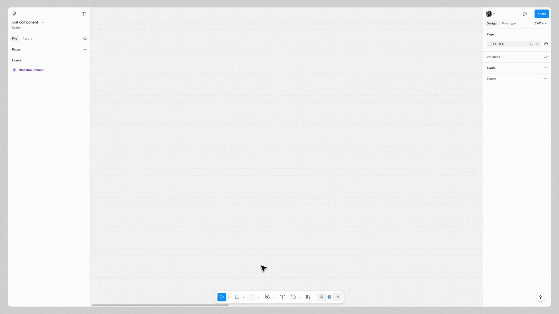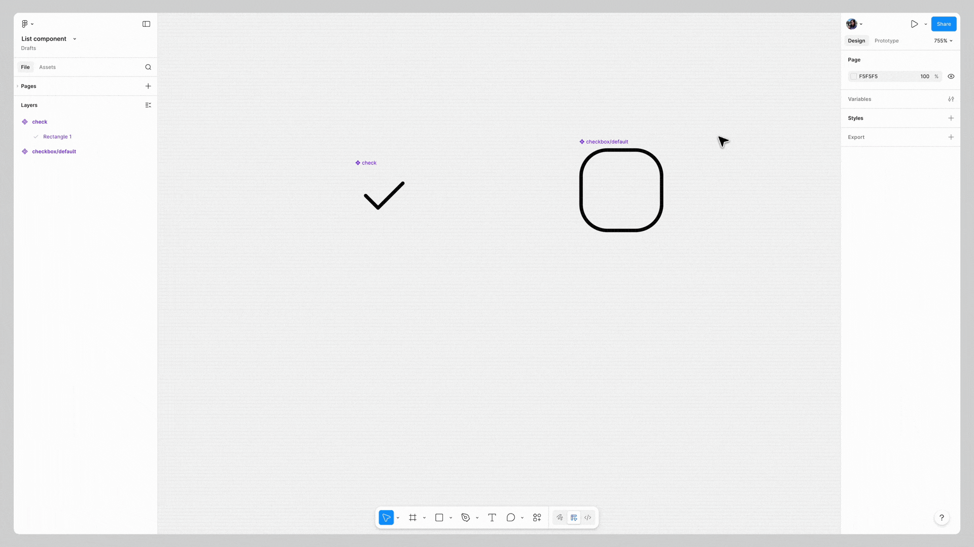 Let’s start by creating the checkbox component set with two variants: default and selected.