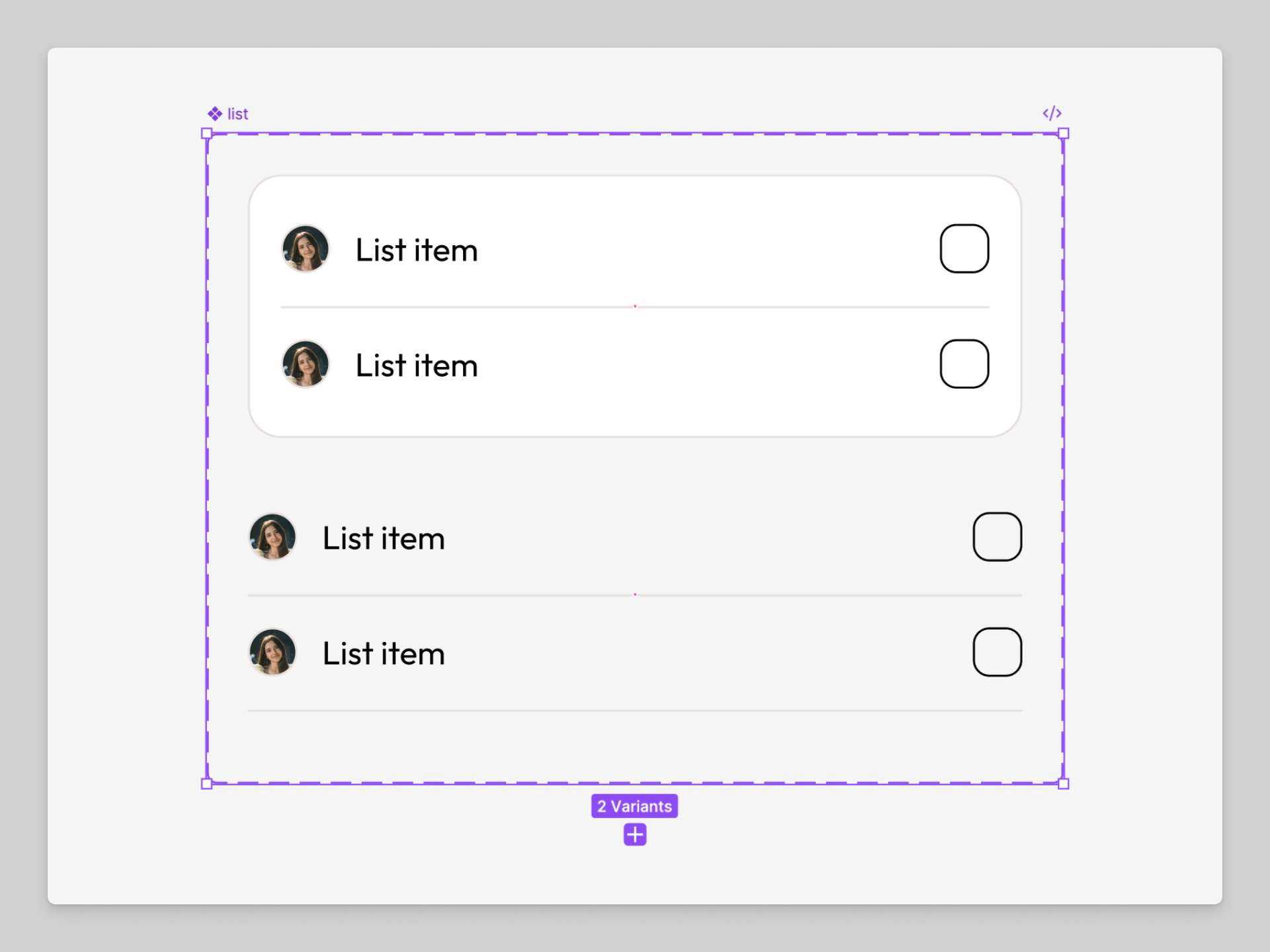 We’re going to create two variants for the list component: one with a container, and one without a container.