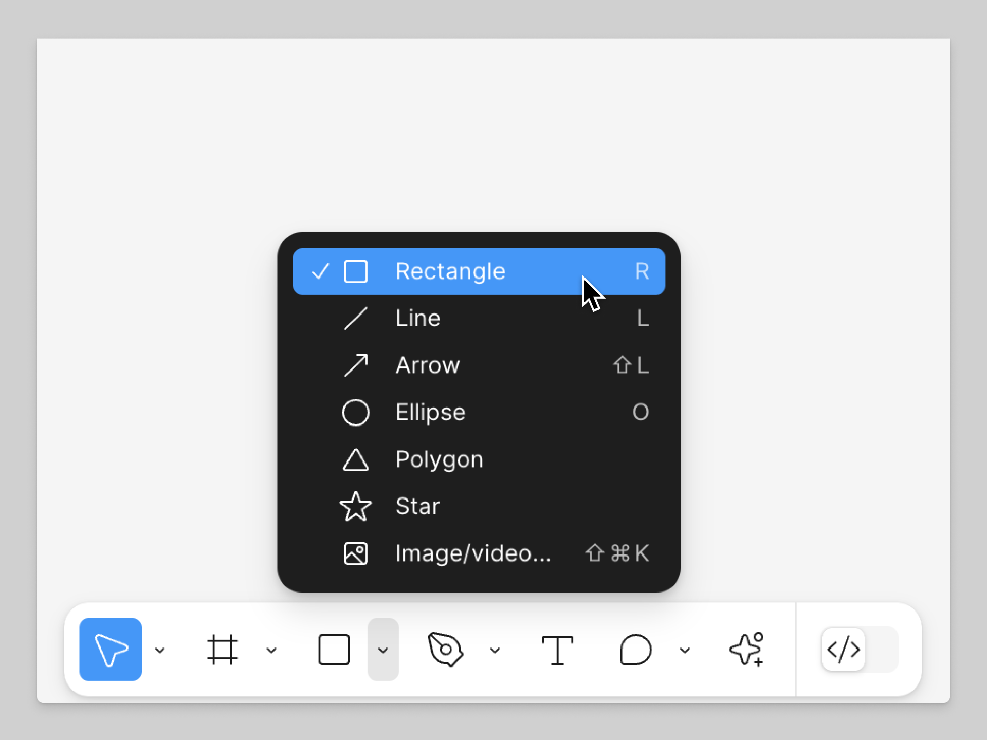 Astuce : Vous pouvez également ajouter des formes en cliquant sur le plan de travail et en faisant glisser votre curseur. Les dimensions de la forme s'affichent sous le bord inférieur lorsque vous redimensionnez la forme. Maintenez la touche Maj enfoncée tout en faisant glisser la forme pour créer des carrés et des cercles parfaits.