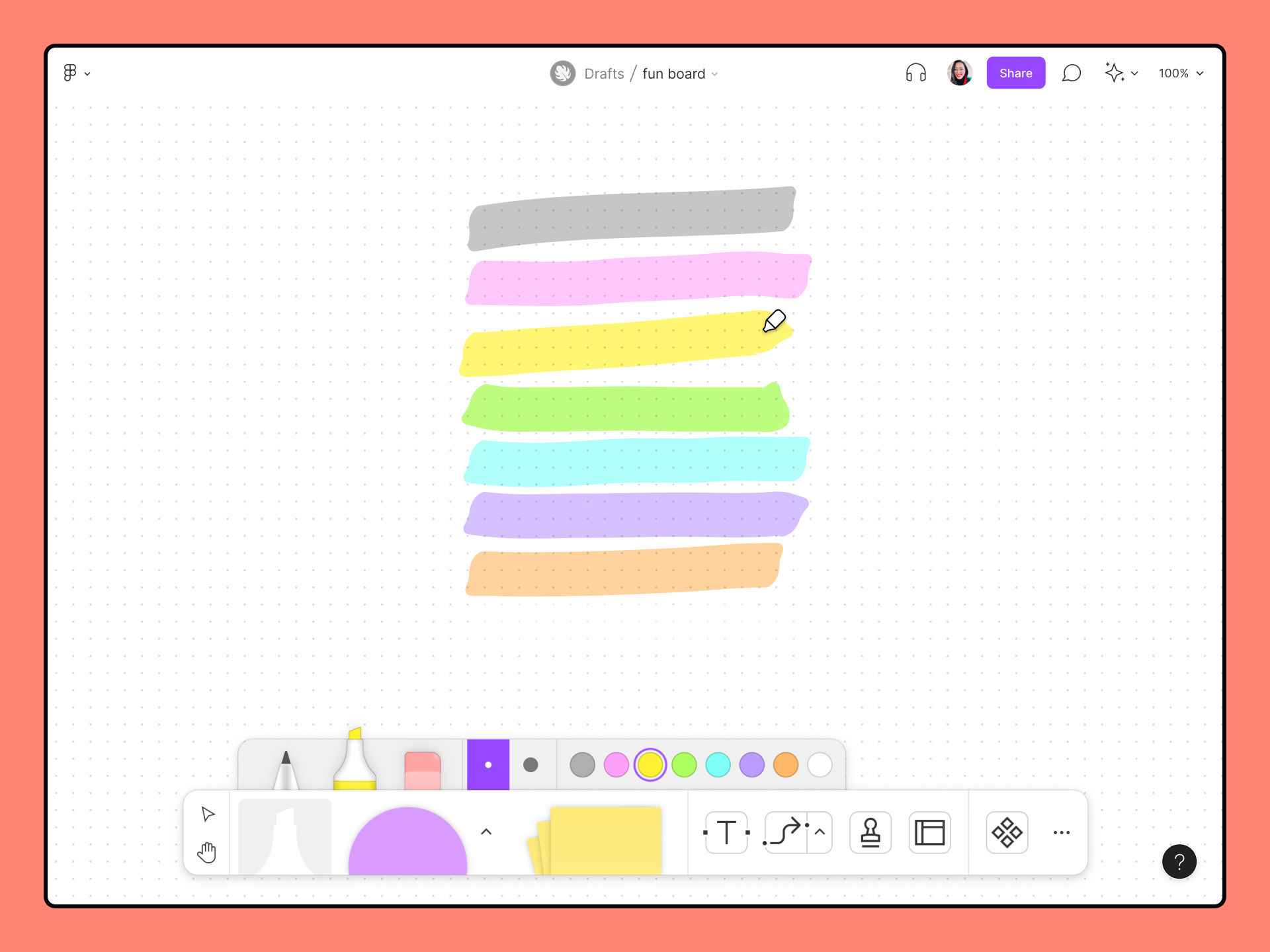 - [マーカー]、[付箋]、[シェイプ]ツールを選択します。
