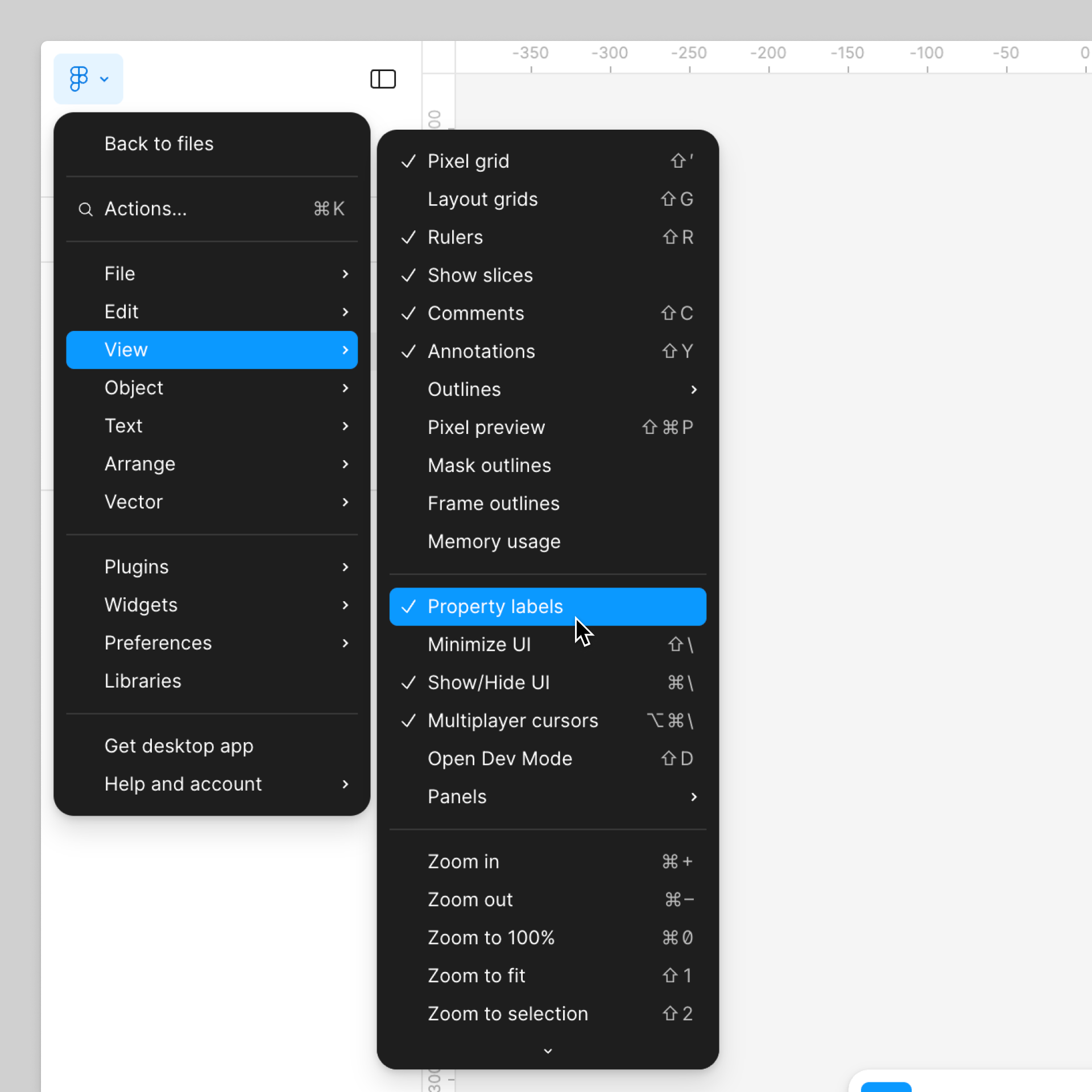 - ビューにカーソルを合わせて、プロパティラベルを選択します。