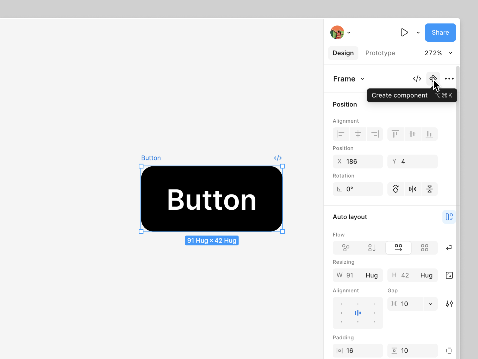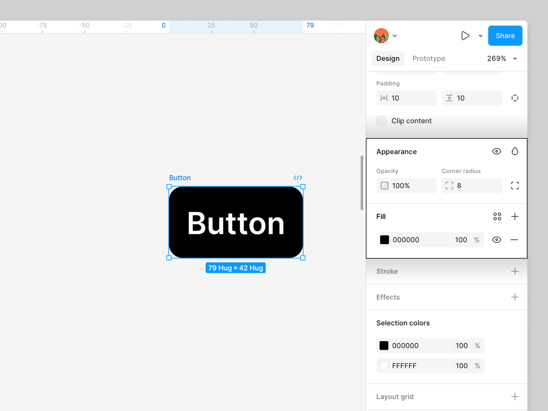 オートレイアウトのプロパティを調整する前に、まずボタンをスタイリングしましょう: