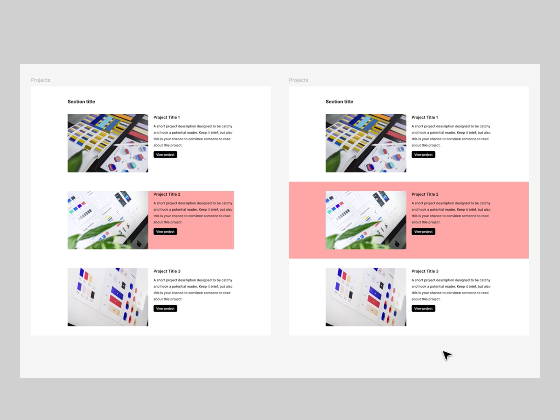 どの方法を選んでも、インスタンスを説明テキストレイヤーの下に配置し、レイヤーが左揃えになっていることを確認してください。レイヤー間の間隔は完璧である必要はありません。オートレイアウトを使用して修正します。