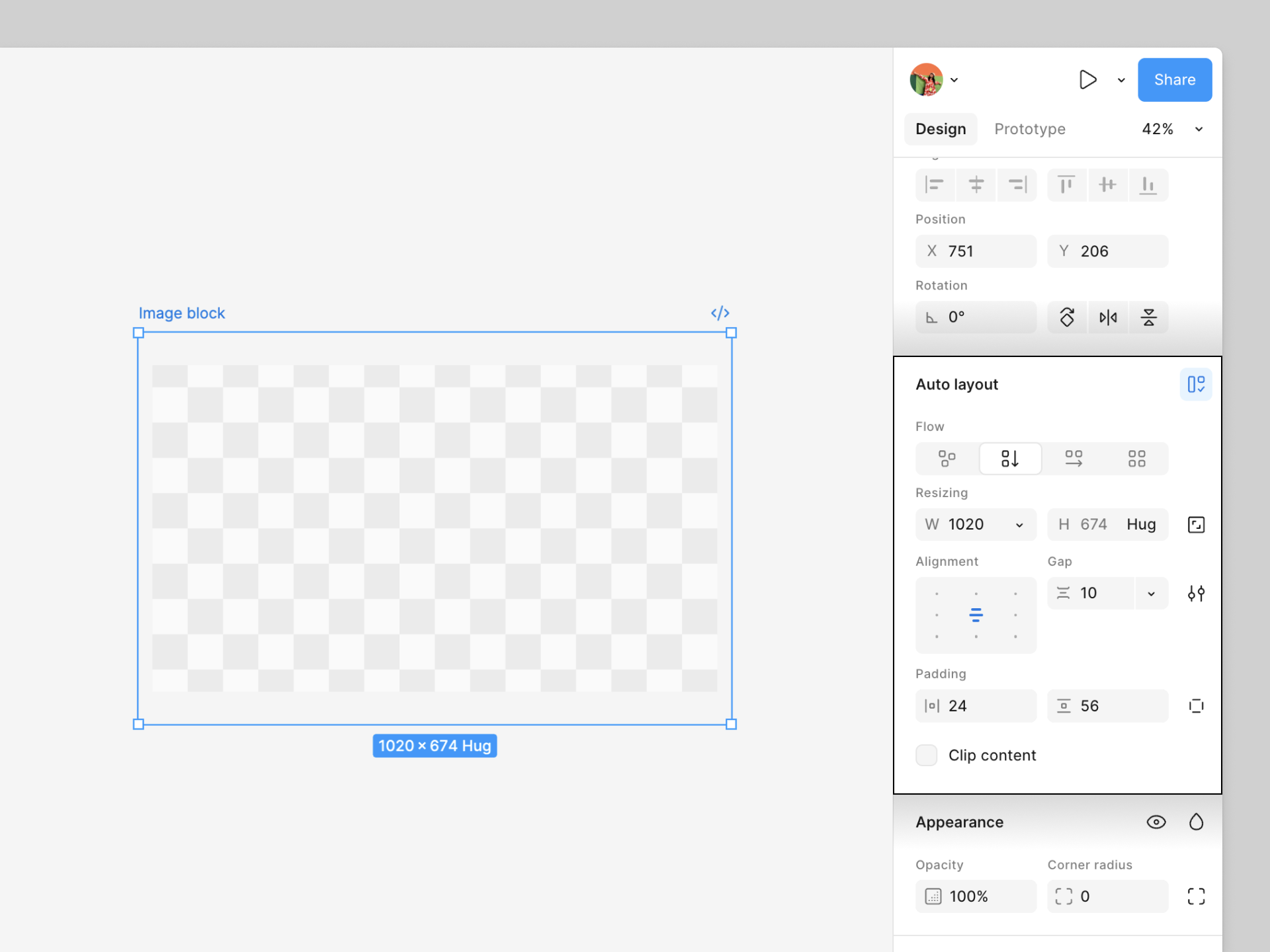 - 画像レイヤーを選択し、Shift Aを使用してオートレイアウトを追加します。