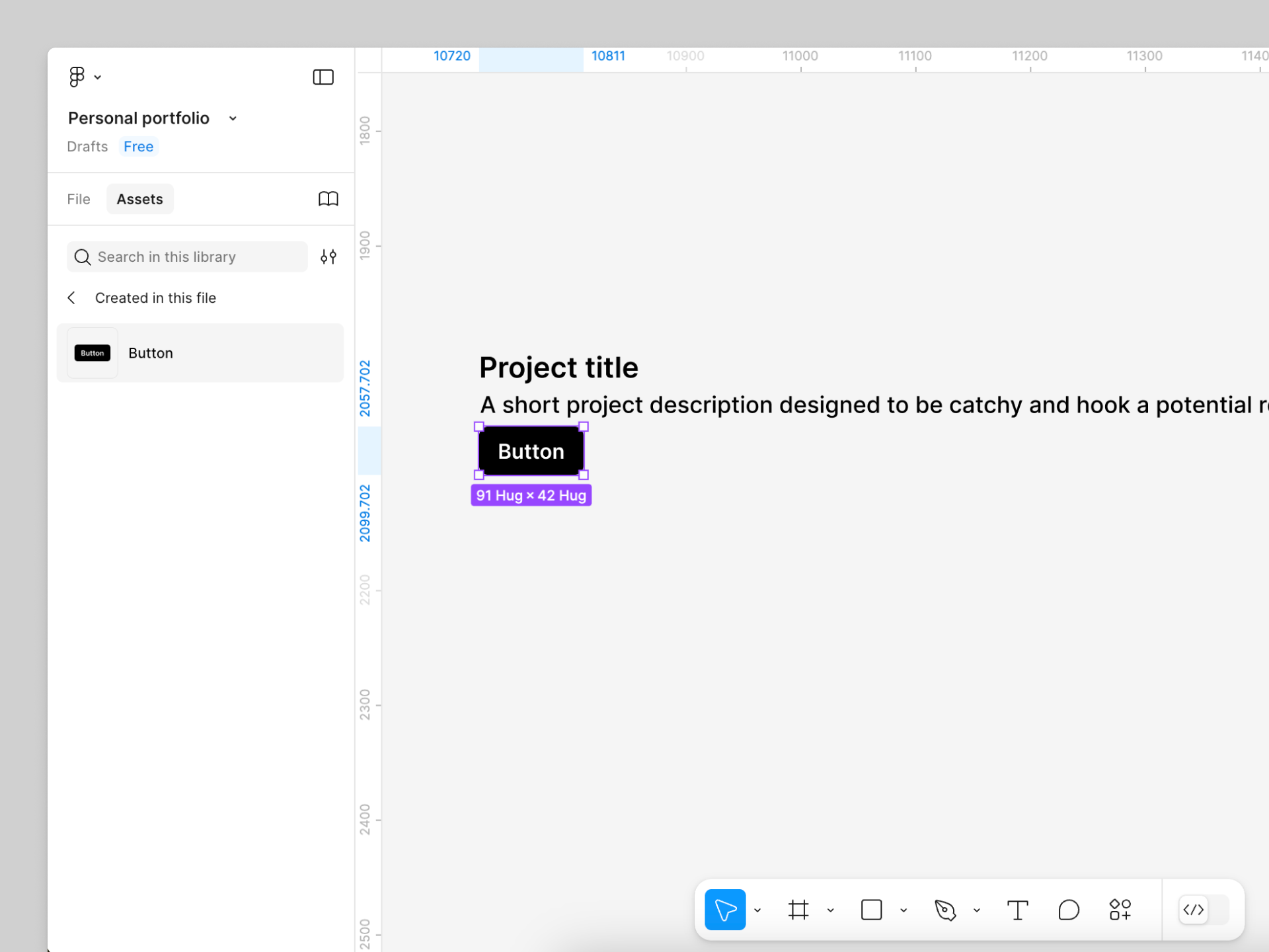 では、ボタンを追加しましょう。メインコンポーネントを使用するのではなく、そのコンポーネントのインスタンスをキャンバスに追加します。