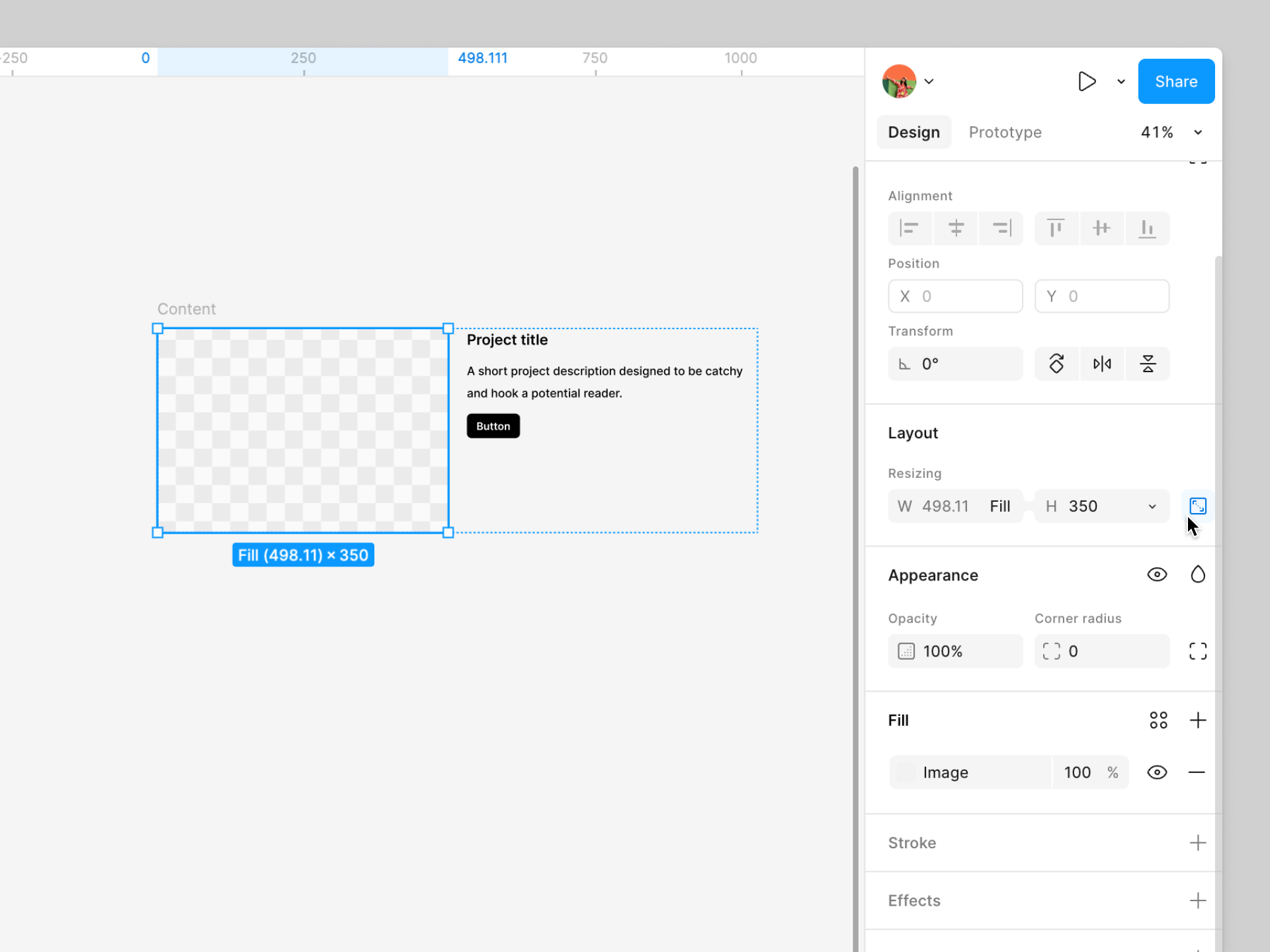 カード要素のすべてのピースが揃ったので、オートレイアウトを使用してそれらをまとめる時が来ました。