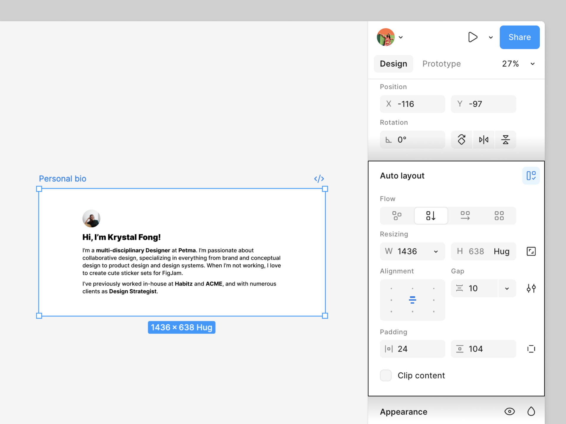 ヒント: Shift Aを押すキーボードショートカットで、オートレイアウトを追加できます!