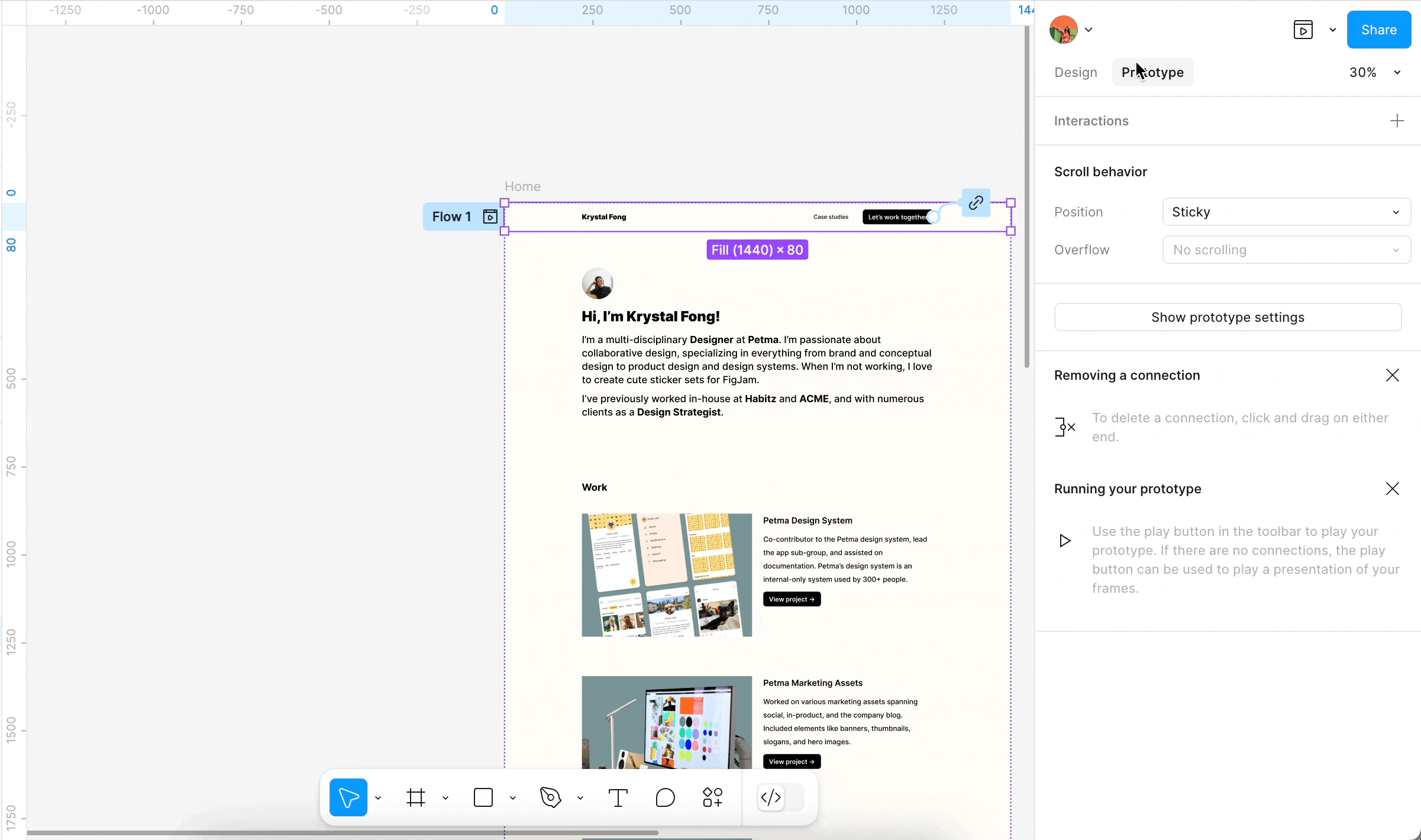 私たちがデザインしたページは非常に長く、通常のデバイススクリーンの高さを遥かに超えています。Figma Designは、ページを縦にスクロールすることを前提としています。しかし、スクロールすると、ページ上のすべてのコンテンツが一緒にスクロールします。Figmaはフレーム全体を一つの大きなコンテンツの塊として扱います。