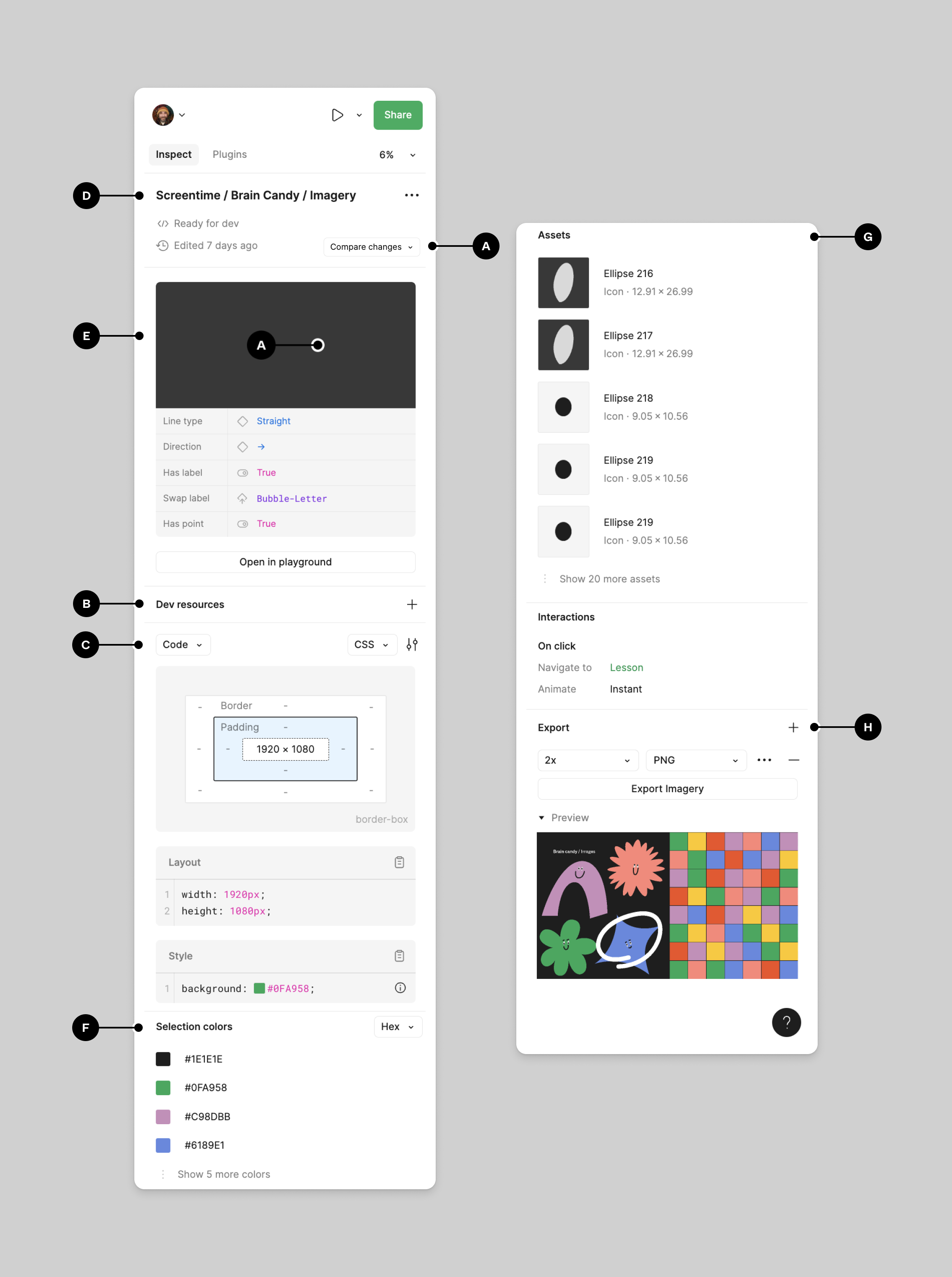 Ontwerpers kunnen aantekeningen gebruiken om ontwerpen te voorzien van extra context, specificaties en afmetingen. Dit maakt het voor ontwikkelaars gemakkelijk om ervoor te zorgen dat ze bij de overdracht geen cruciale opmerkingen missen. Gebruik aantekeningen en metingen in Dev Mode om: